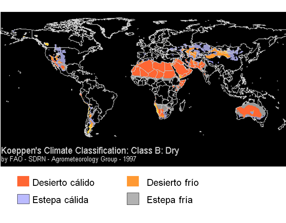 - BW : “Desértico”, árido con pp anual inferior a 400 mm.