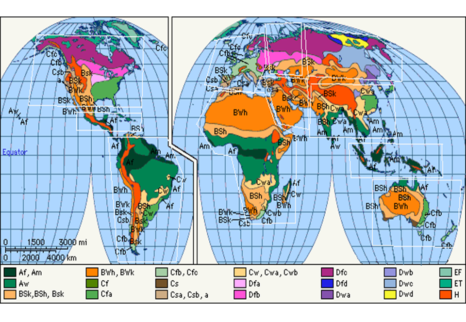 Identifica y explica la clasificación climática de Koppen, clasificación climática de Tornthwaite