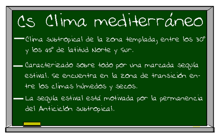 - Cs : “Verano seco caluroso”, r(sec) < 30 mm (en verano)