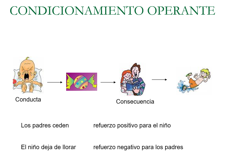 - Reforzamiento positivo. Cuando la conducta viene seguida de un evento grato.