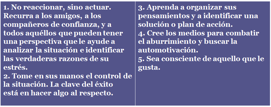 - Por ello es importante seguir los siguientes consejos para reducir a diario los efectos negativos del estrés.