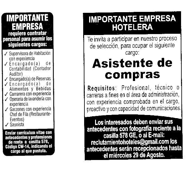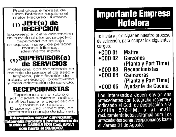 - El anuncio, no es sino una carta de la empresa dirigida al candidato que se busca.