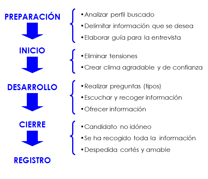 - En la entrevista de selección podemos encontrar tres fases, que a continuación se mencionan: rapport, cima, y cierre.