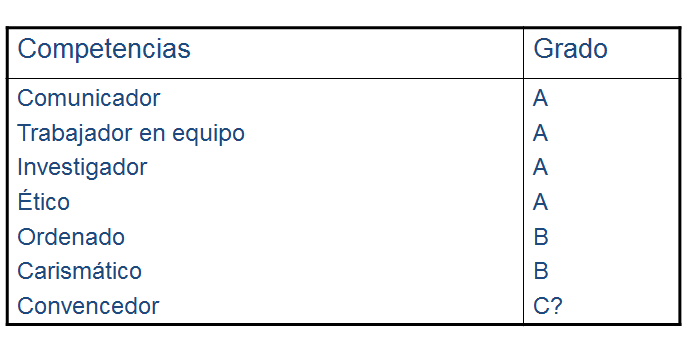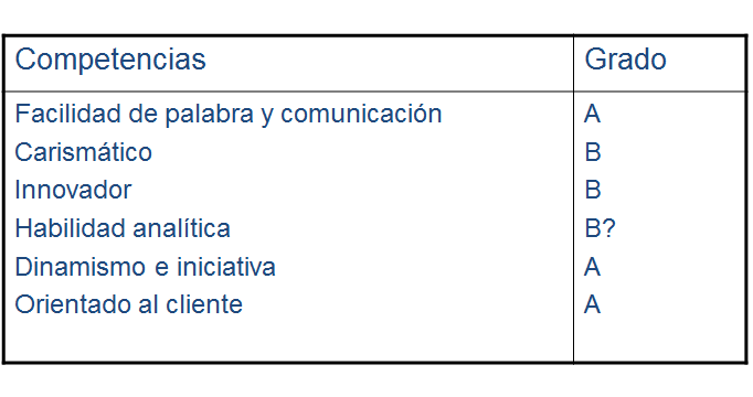 - Mínimo necesario para el puesto, pero dentro del perfil requerido. No indica una subvaloración de la competencia.