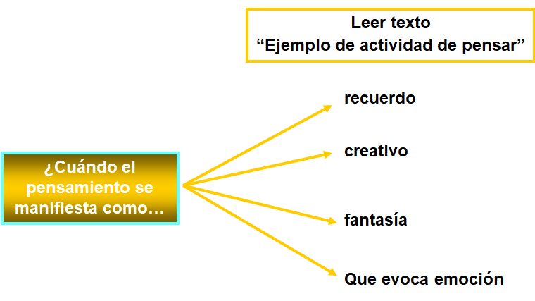 - “Actividad mental que consiste en procesar información que el individuo ha incorporado y almacenado gracias a la percepción, atención y memoria” (análisis - síntesis)
