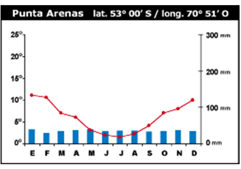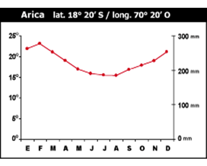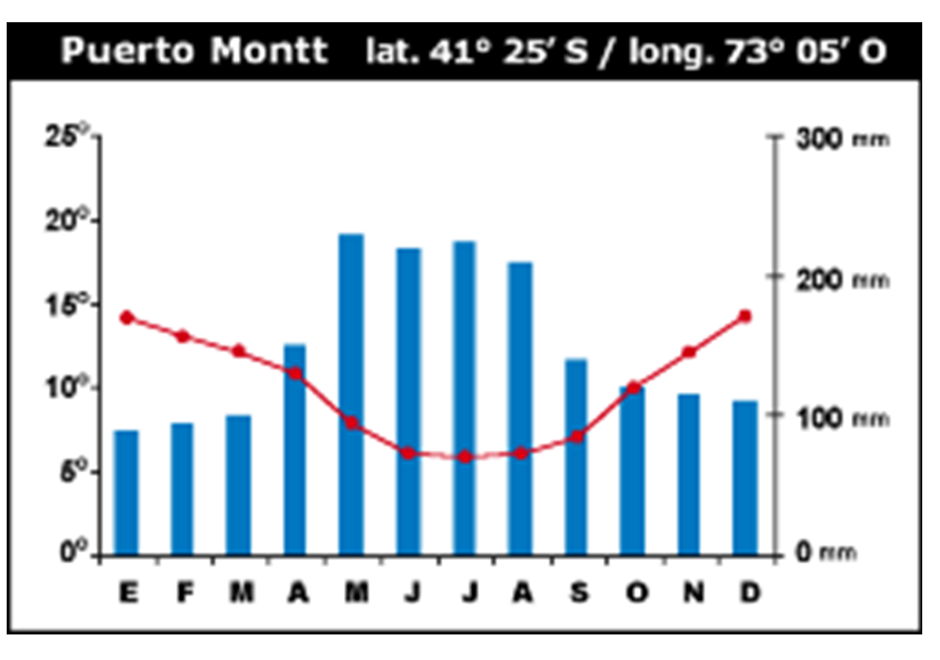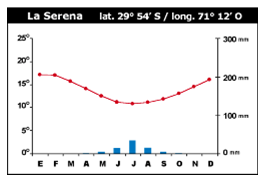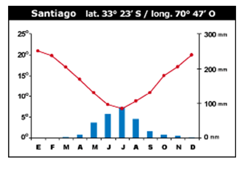 CLIMOGRAMA DE LAS GRANDES ZONAS GEOGRÁFICAS DE CHILE