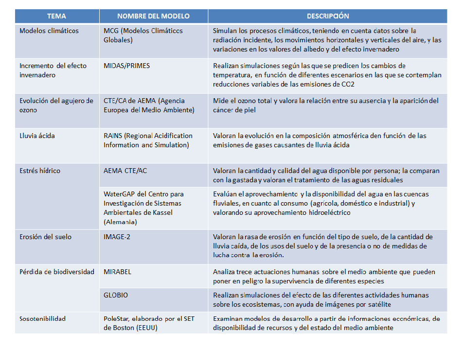 - A pesar de las críticas, hoy nadie discute la utilidad de estos modelos como voz de alarma ante un modo de vida no sostenible. Además se convirtieron en precursores de otras medidas como los indicadores ambientales PER (Presión-Estado-Respuesta) y otros modelos de simulación medioambiental. Ejemplos: