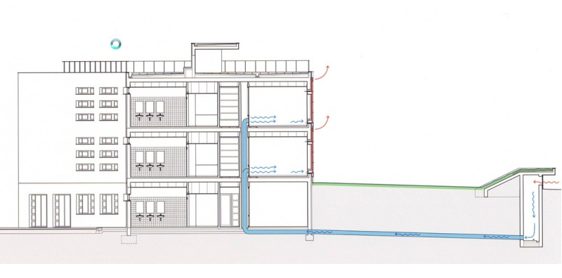 - Sistema pasivo + activo calefacción. Refrescamiento activo (tubos enterrados)