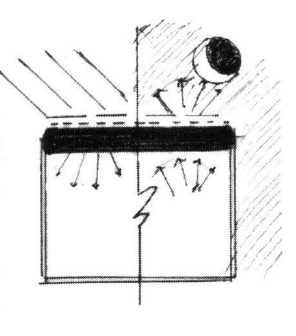 - Ganancia indirecta: en este caso la radiación solar se absorbe en el exterior del recinto a climatizar. El acople es por conducción a través de la masa de acumulación (y luego radiación) y también puede ser por convección. El ejemplo más clásico es el Muro Trombe.