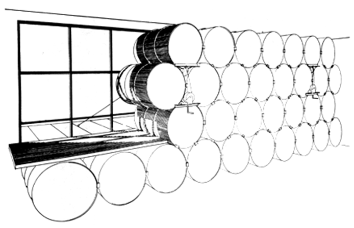 - Ganancia indirecta: aquí hay dos grandes tipos. El muro Trombe (con y sin ventilación) y los acumuladores en los techos (“roof ponds”).