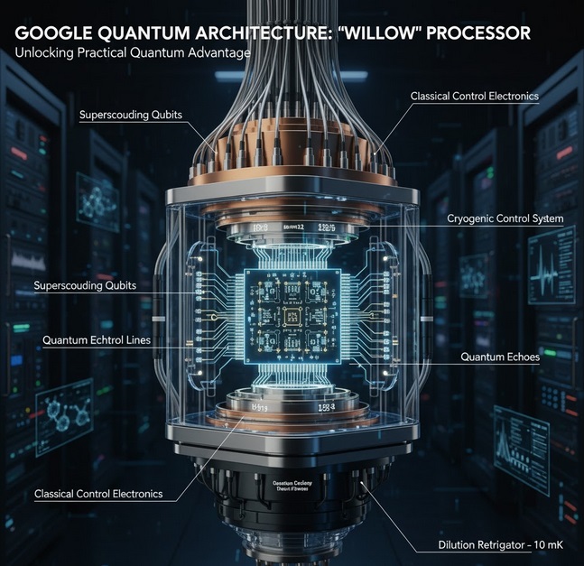 La demostración de Google con el algoritmo Quantum Echoes y el chip Willow es un hito fundamental que traslada la computación cuántica desde la mera demostración teórica a la "ventaja cuántica práctica".